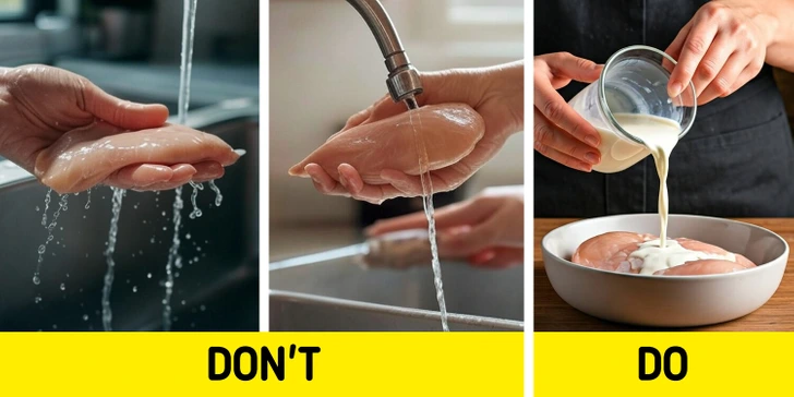 Many people believe that rinsing raw chicken makes it cleaner, but it actually spreads bacteria instead of removing it.