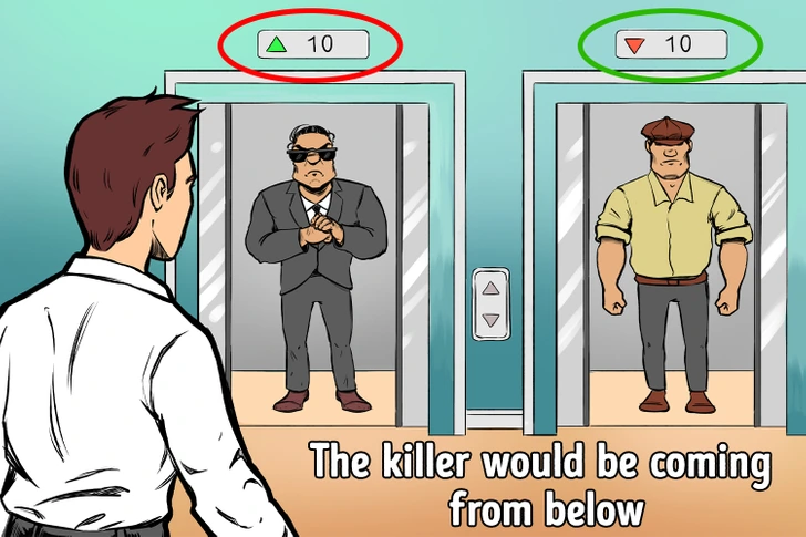 Tom learns that a dangerous criminal has entered his apartment building. Two elevators open at once, and both contain someone suspicious. He can only choose one.