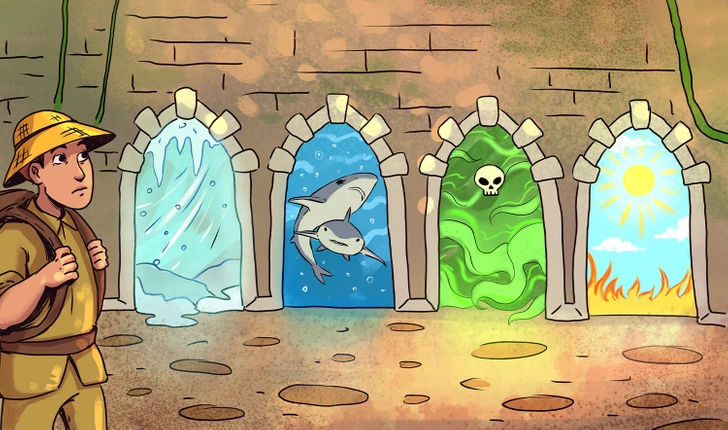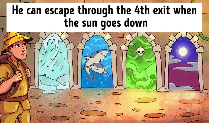 A princess is locked in a tower and hears that she can escape through the fourth door. But here’s the twist—there are only three doors.