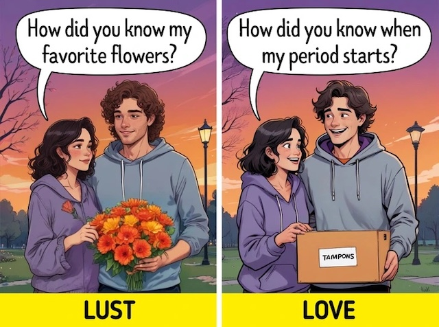 Infatuation often involves putting on a show to keep someone interested, but true love allows both people to be authentic, flaws and all.