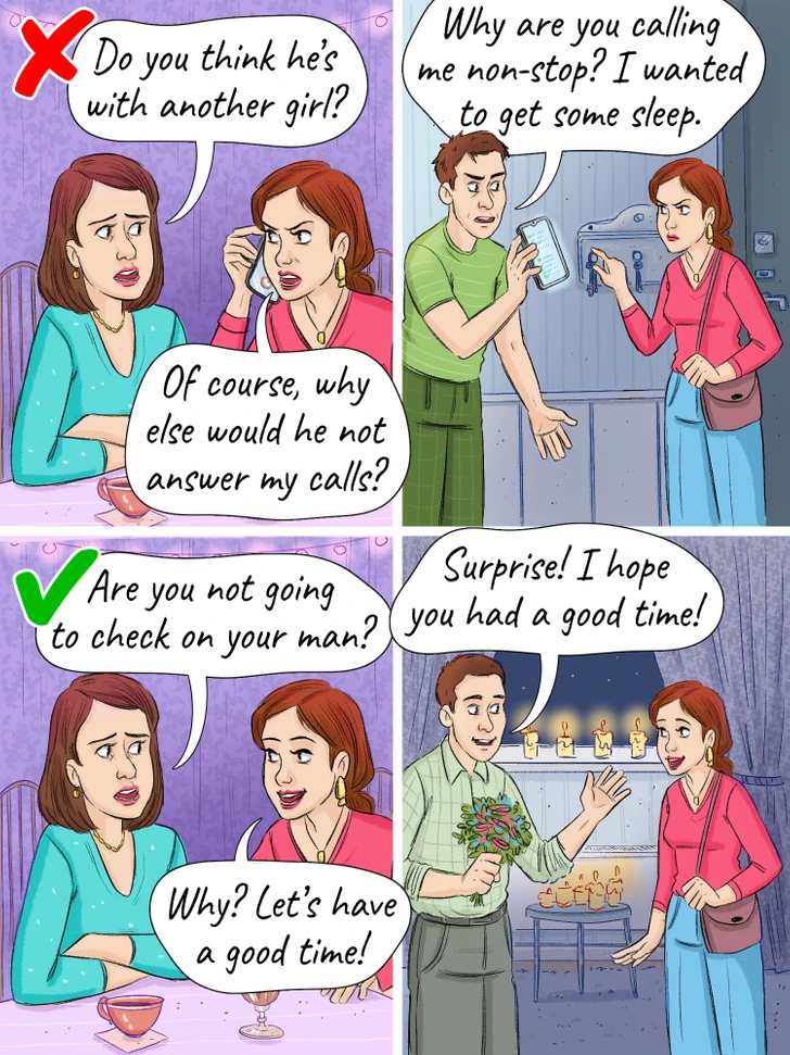 Jealousy doesn’t keep someone loyal—it just adds anxiety to the mix. If there’s no reason, it chips away at trust. If there is a reason, the damage is already done. Instead of guessing games, focus on clear, honest communication.