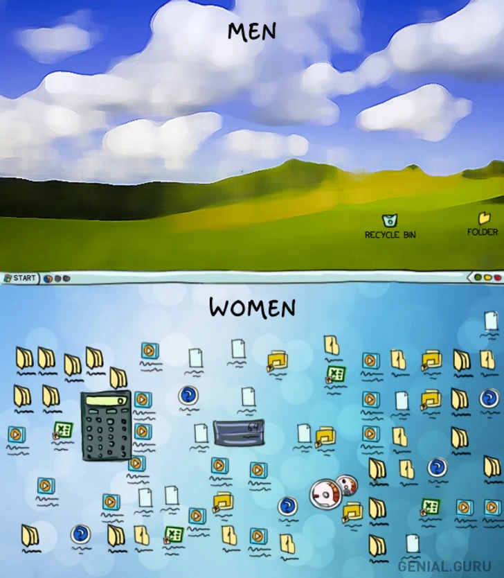 Look at a woman’s computer desktop, and you’ll likely find a carefully organized layout with neatly labeled folders and files sorted by category. Now, check a man’s desktop—it’s usually a chaotic mess of icons scattered everywhere, half of them being duplicate files and forgotten downloads.