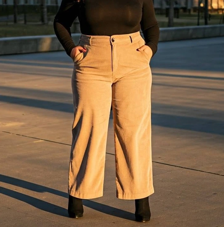 High-waisted wide-leg pants are perfect for curvy bodies. They cinch at the waist, enhance your natural shape, and create a stunning silhouette.