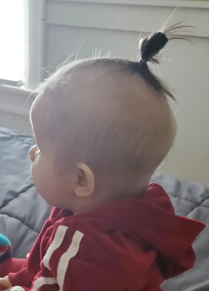 Born with stunning blonde streaks, this baby didn’t need a single drop of hair dye. It’s pure, natural flair.