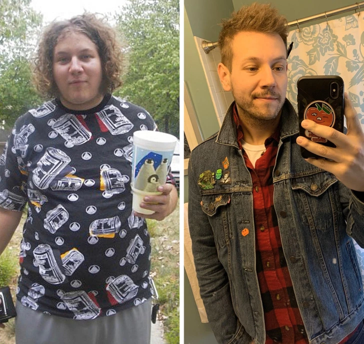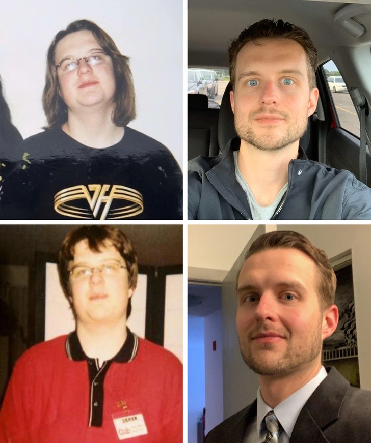 Fitness played a key role in many transformations. One person went from feeling sluggish and unhappy in their 20s to finding hiking, clean eating, and an active lifestyle. By 35, they had lost weight, cleared up their skin, and discovered a style that truly represented them.