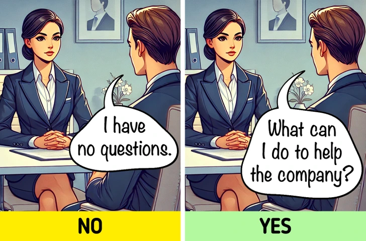 Most interviews end with: “Do you have any questions?” That’s your moment to shine. Don’t ask about time off or benefits—ask how you can help.