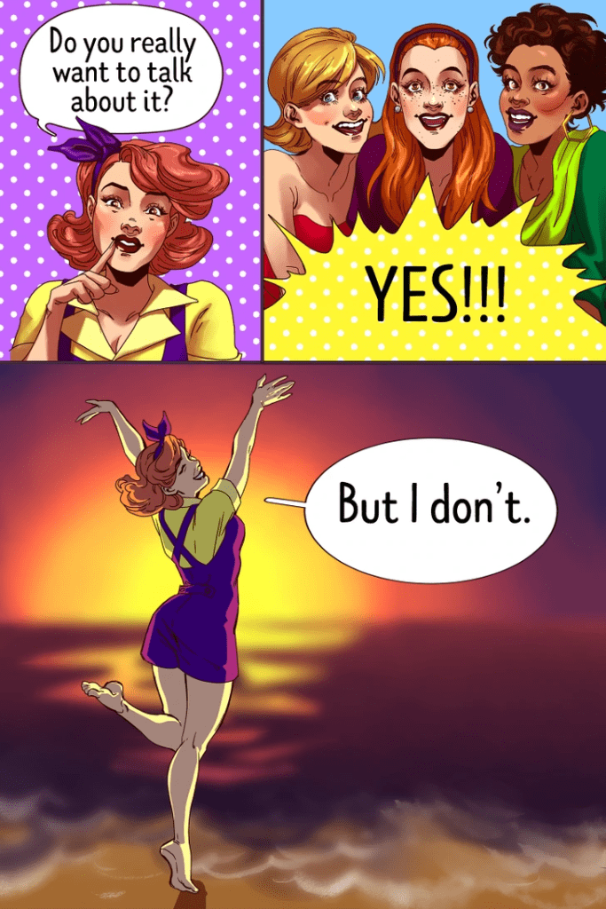 You don’t owe anyone your vulnerability. Smile, nod, and steer the convo somewhere else.
