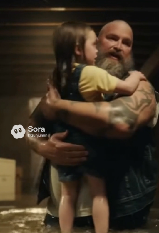 He moved by feel—one hand sliding along the slick wall, the other lifting Lily high above the rising water. Debris scraped his arms. A sharp edge cut across his shoulder. The house creaked and shifted around them.