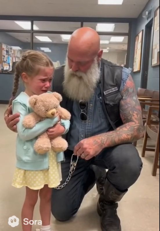 But as he took in the scenery, something caught his eye—a small figure standing by the roadside. A little girl, no more than six, stood there, alone, with wide eyes that spoke volumes of fear. She clutched a stuffed bear in her arms, its fur frayed, showing signs of many nights of comfort. Jack’s heart sank. This wasn’t the kind of sight he expected on the open road.