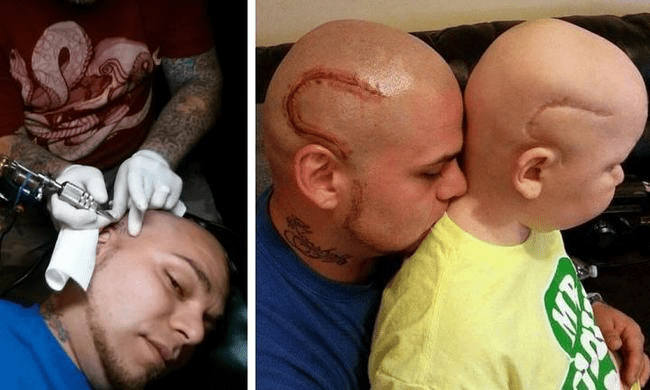 Josh Marshall, Gabriel’s devoted father, decided that his son would never carry that burden alone. To show unwavering solidarity, he shaved his own head and got a tattoo that perfectly mirrored Gabriel’s scar. “If people wanted to stare, they could stare at both of us,” Josh said. His message was simple but powerful: Gabriel’s scar was not something to hide, but something to stand beside with pride.