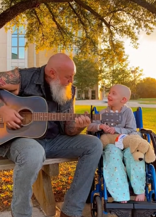 This moving story shows how a tough-looking biker became an unexpected source of healing for a child battling cancer. By borrowing a guitar and playing under an oak tree, he transformed a hospital courtyard into a haven of peace and warmth. The biker rediscovered his own purpose while giving the boy a moment of relief, proving that compassion can come from the most unlikely places. In the end, a simple act of kindness became a powerful reminder that sometimes the smallest gestures create the strongest impact.