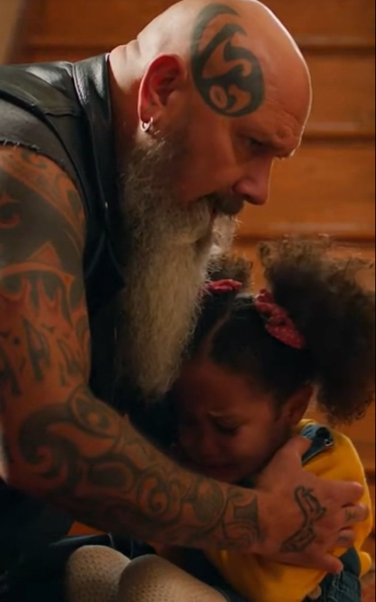 Before he walked away, the little girl peered up at him—eyes still shiny but steady now.