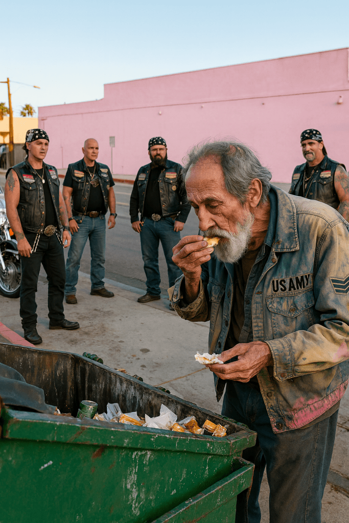 It was just another Thursday morning on Route 47. The rumble of motorcycles had faded into the background hum of the McDonald’s where the Thunderbirds MC gathered for breakfast. But Diesel, one of the bikers, noticed something different that morning—a frail, 82-year-old man in a faded Army jacket rummaging through a dumpster behind the restaurant. The sight stopped him cold.