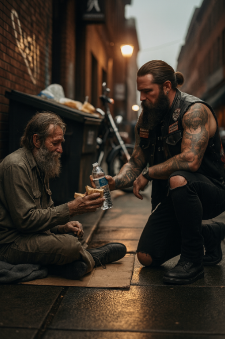 Grizzly had been through his share of rough patches. There were nights when the backseat of his truck was his only home and mornings when coffee was his only meal. Life on the road had stripped him of a lot, but it had also given him something priceless — perspective. He had learned that brotherhood wasn’t just about the club; it was about humanity. To him, being a biker wasn’t rebellion — it was connection.
