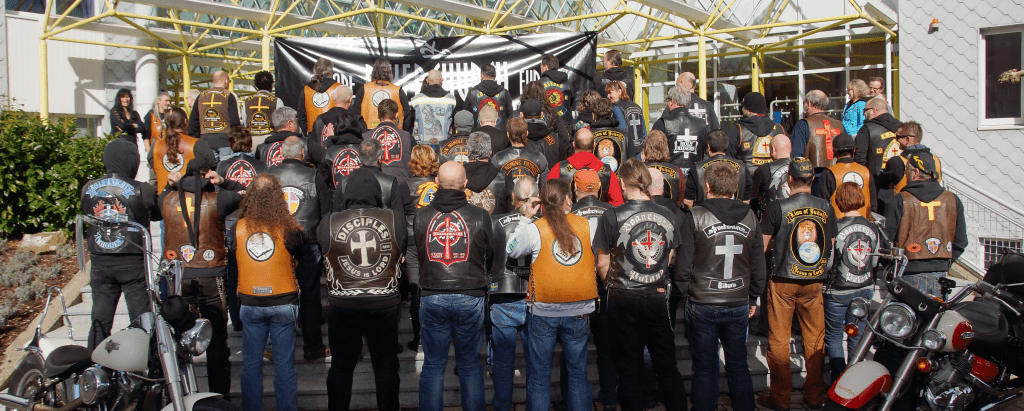 Even the bikers—tough men with weathered faces—removed their helmets and bowed their heads. In that quiet circle, fear dissolved into faith.