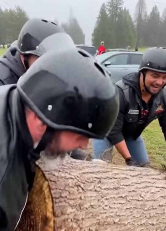 As the group rounded a curve, Mack lifted a gloved hand and signaled a stop. Lying across the two-lane highway was a massive tree, torn down by the night’s storm. Cars had started lining up on both sides, drivers unsure of what to do. But Mack didn’t hesitate. He turned off his engine, the deep growl fading into the mist.