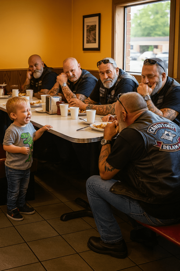 It was just another late-night stop for the Savage Angels Motorcycle Club—fifteen veterans sharing pancakes, coffee, and laughter at a Denny’s off the interstate. That’s when the world stopped. A small boy in a dinosaur T-shirt walked up to our table, looked straight at Big Mike, our president, and said the words that made every fork freeze midair: