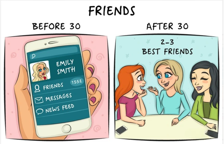 In your twenties, you’re juggling birthdays, bar crawls, and weekend plans with 15 different people. But after 30, the invites slow down. You stop trying to maintain surface-level friendships and focus on deeper connections. A cozy dinner with two close friends starts to feel more fulfilling than a packed party ever did.