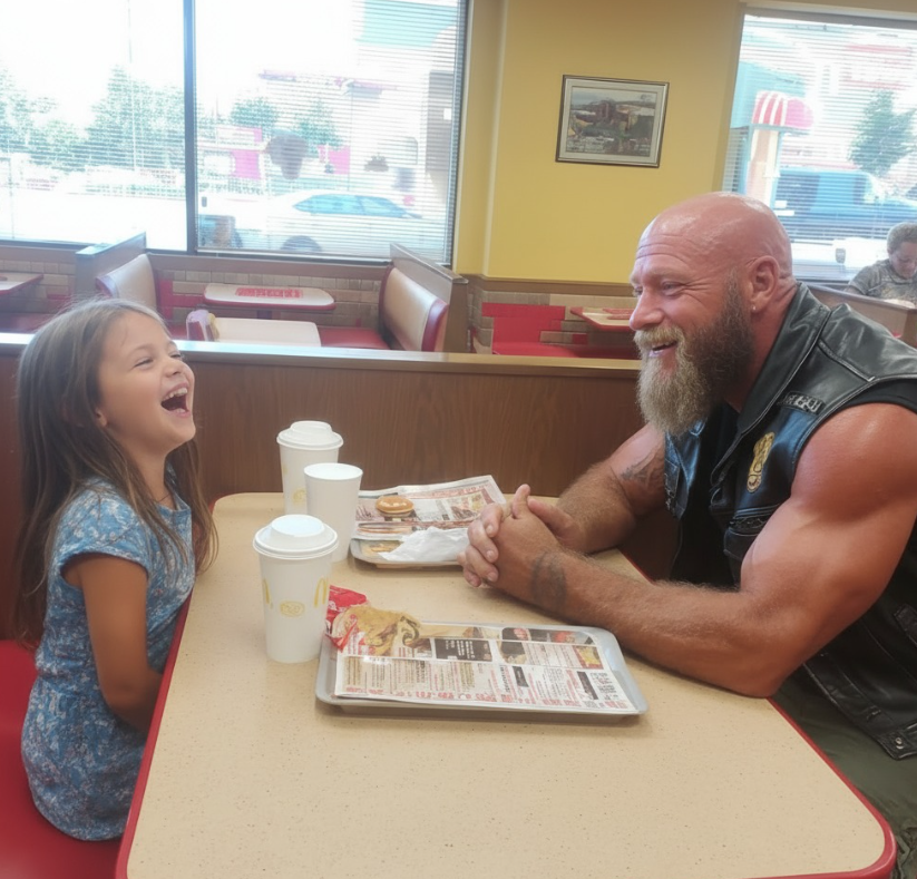 For six months, Uncle Bear, a biker known for his skull tattoos and a scarred face, would visit McDonald’s every Saturday at noon. He would always order two Happy Meals and sit at the same corner booth, waiting for a special guest—a seven-year-old girl named Lily. Their routine seemed harmless, but to many, it appeared strange.