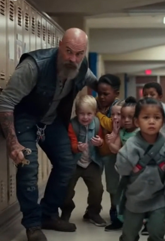 Without a moment’s hesitation, the bikers stormed into the school. Gunshots continued to echo in the distance, but their resolve remained unshaken. Teachers and students sprinted past them, desperate to find safety. Tank and Bear, the club’s enforcer, made their way down the hall, checking each classroom and ensuring every door was secured. Razor, known for his quick thinking, found himself face-to-face with a teacher trying to keep a group of terrified students calm.