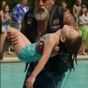 The Poolside Rescue: A Biker’s Heroic Leap That Changed a Summer Day