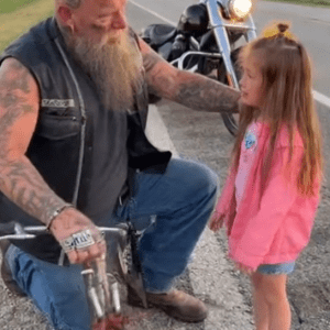 The Day a Biker Knelt in the Street to Help a Little Girl Everyone Else Scolded