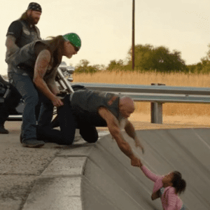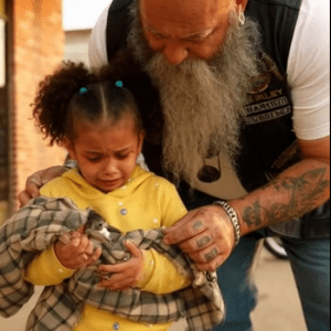 The biker who stood between a little girl and a stranger: A powerful story of courage and instant instinct