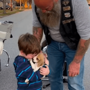 A quiet afternoon interrupted by a sudden cryHank “Bulldog” Mason never looked like someone who belonged on a peaceful suburban sidewalk. With his sun-faded leather vest, thick,…