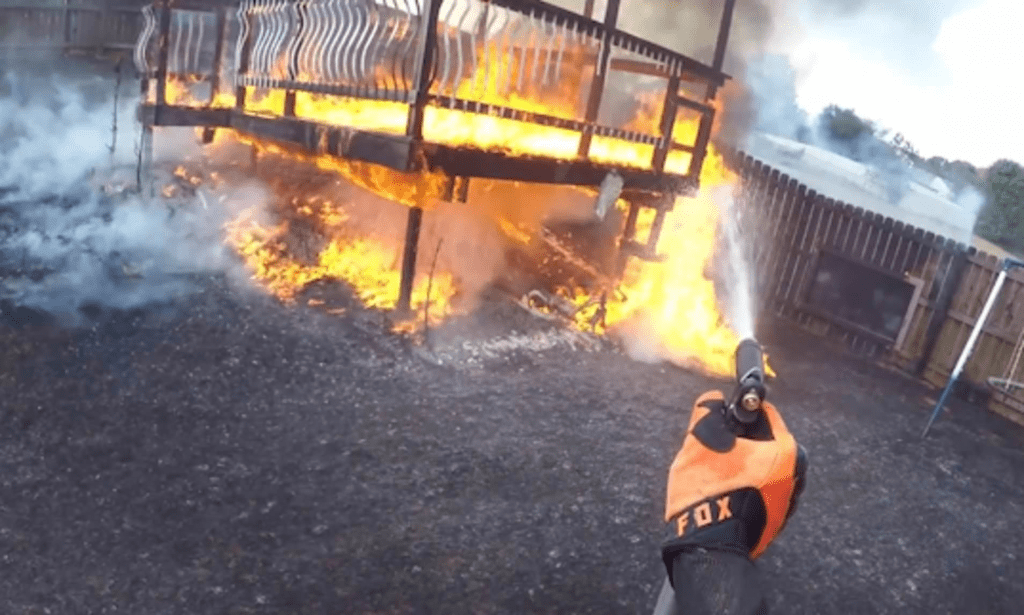 “Hold still, buddy! I’ve got you!” Bulldog shouted over the roar of the fire, his voice calm but commanding. Scooping the boy into his arms, he pressed him close, shielding him from the scorching blaze. The child’s sobs rang out frantically, clutching Bulldog’s jacket as though it were a lifeline.