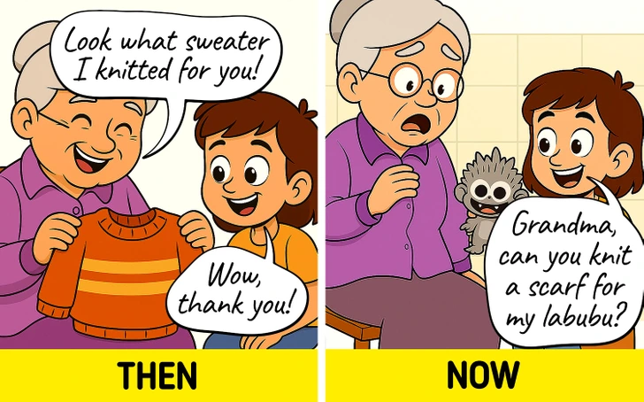 Sure, knitting still happens—but now it’s sandwiched between trending dances and viral recipes. One hilarious panel shows grandma attempting a TikTok dance. She almost knocks over a lamp but keeps dancing like nobody’s watching. The kids are in stitches—and grandma’s proud of finally nailing the move after ten tries.