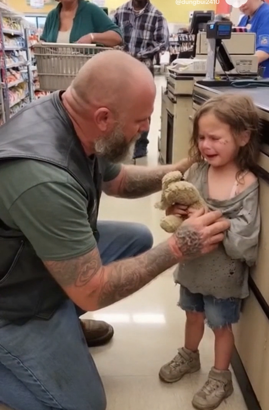 In that moment, Tank could’ve walked away. It wasn’t his business. But that’s not what men like him do. Behind his rough exterior and road dust was a heart that had seen enough of the world’s cruelty — and refused to add to it.