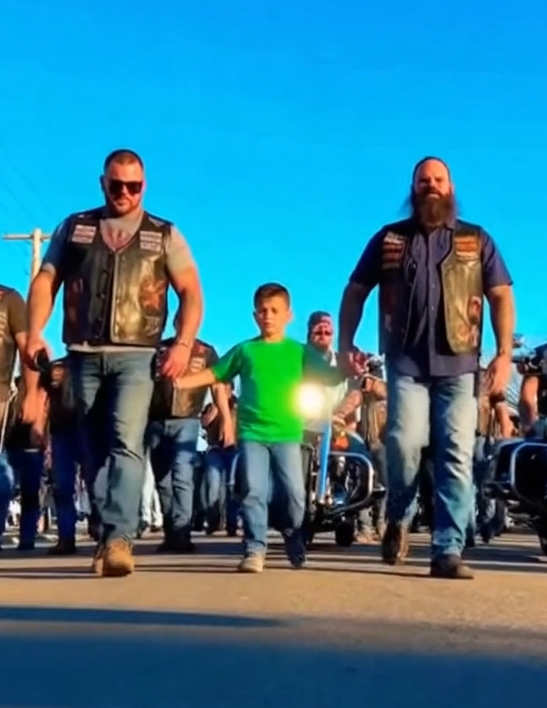 And so, for the first time in weeks, my son stepped forward. Boots thudded in rhythm as forty-seven men walked him to school, their engines idling behind them like a heartbeat of protection. Neighbors froze mid-sip of coffee, stunned by the sight — a child between giants, grief wrapped in brotherhood.