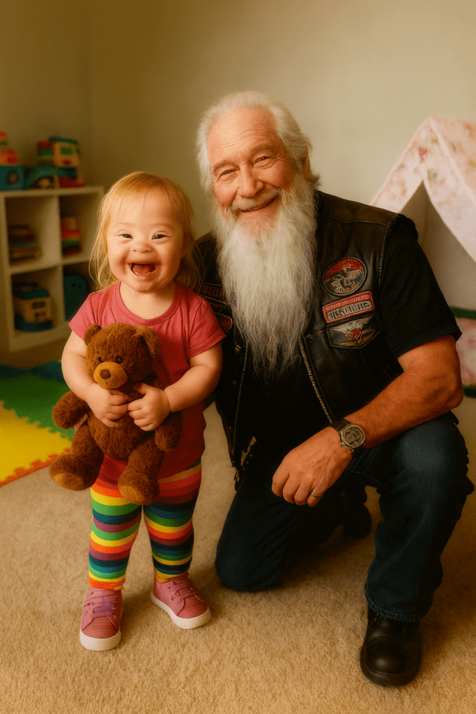 I’d been volunteering at the local adoption agency, fixing their vans and bikes for free. It was my way of staying busy, of giving something back. That’s where I first met Ruby. She was barely walking, babbling words only she could understand, yet when she saw my biker vest, she grinned and pointed.