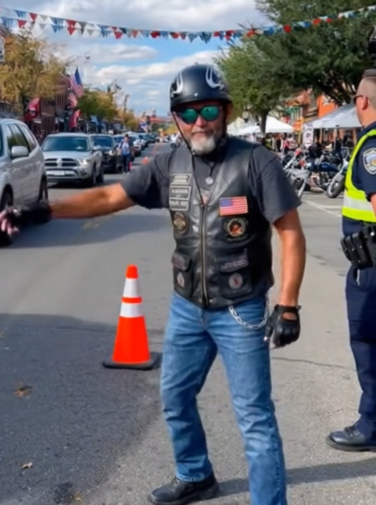 Children laughed and giggled as bikers carefully held their hands while crossing. Festival-goers paused to capture photos, astonished at this rare sight of Harley riders assisting police in keeping the streets safe. Vendors peeked from booths, shaking their heads in admiration, silently acknowledging the unique collaboration unfolding before them.