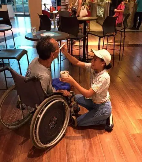 People looked away. Not because they were cruel, but because looking would mean caring. I brought a towel, steadied his plate, and knelt beside the booth.