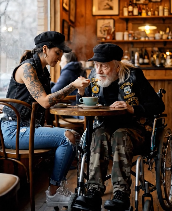 He came in at 7 a.m., slow but proud, leather vest soft with age, military patches stitched beside old rally pins. His motorcycle helmet rested by the window like a piece of history. Scrambled eggs, wheat toast, coffee—the usual. Only that morning the fork might as well have weighed a brick. Eggs slid off. Water spilled. His face flushed with the kind of embarrassment that burns deeper than hot coffee.