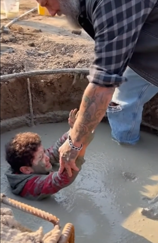 The moment Blaze’s boots hit the cement, everything became ten times harder. The thick slurry grabbed his legs, pulling him down almost as fast as it pulled the boy. Workers watched in stunned silence, unsure why a biker—covered in tattoos, leather, and sweat—was the first to leap into danger.