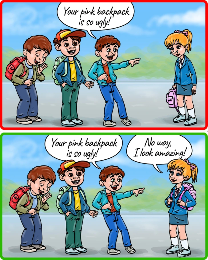 Sometimes, insults are disguised as jokes or backhanded compliments. Instead of ignoring them, try this tactic: