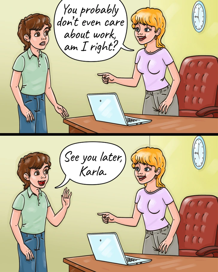 Humor neutralizes hostility and shows that their words don’t affect you.