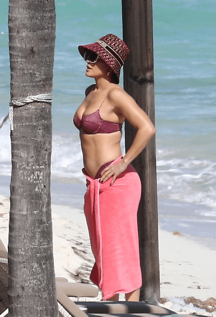 Video: Jennifer Lopez shows off her enviable body while walking on the beach in a burgundy bikini!