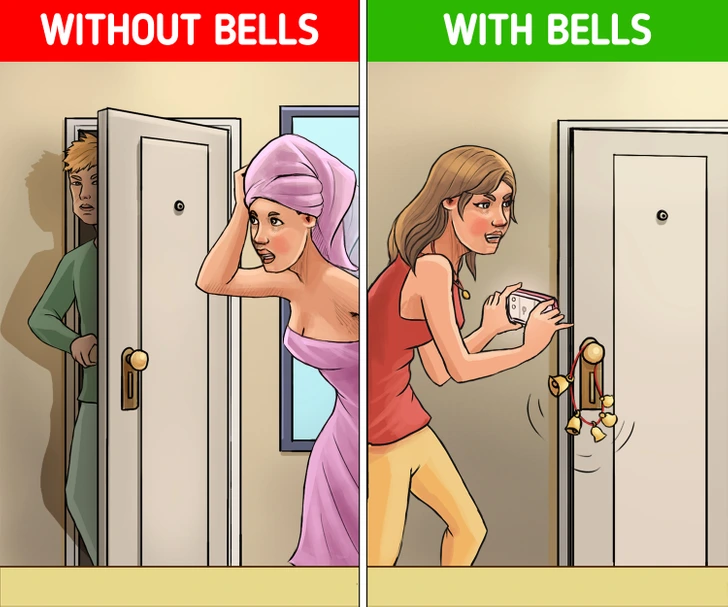 When staying in a hotel or shared space, you can enhance your security with a simple noise alarm. Hanging a few bells or even an ironing board on your door handle can alert you if someone tries to enter. This DIY security measure offers peace of mind, especially when traveling alone.