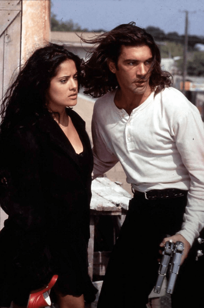 Opposite Antonio Banderas’s El Mariachi, Hayek plays presence against spectacle. Their chemistry is not only about romance; it is a conversation in posture and pace. When Banderas moves like a coiled spring, Hayek answers with grounded stillness. When the camera whips, she anchors. When it lingers, she sparks a new rhythm with a micro-expression—barely there, yet fully readable. The pair turns proximity into storytelling: distance equals doubt; closeness equals risk accepted. By the time they share close quarters, the audience understands their alignment without a single declarative sentence.