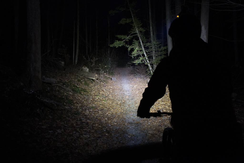 He wheeled his Harley closer to the tree line and revved it gently. The headlight flared through the forest, carving a glowing path through the fog and trees.