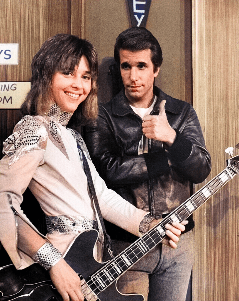 In addition to her music career, Suzi Quatro made a significant impact as an actress, further expanding her influence in popular culture. In the late 1970s, she landed a recurring role as Leather Tuscadero on the popular American sitcom Happy Days. Quatro’s character, a tough rocker with a soft side, resonated with audiences and introduced her to a broader American audience. Her portrayal of Leather Tuscadero also reinforced her image as a rock icon, solidifying her status as a trailblazer for women in the entertainment industry.