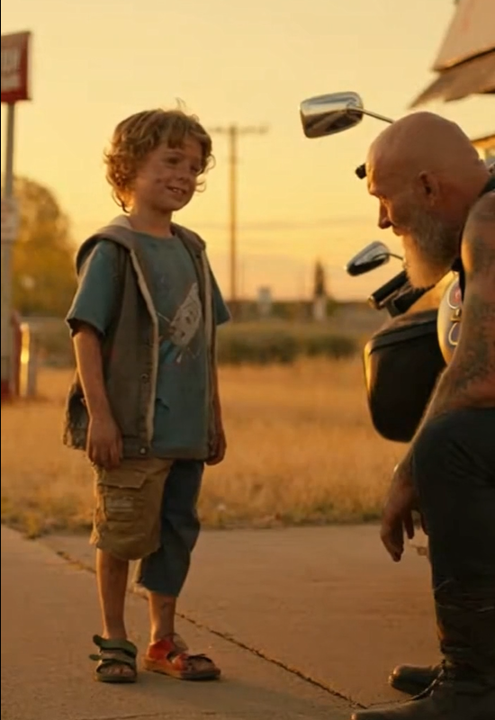 One warm afternoon, as Bear fueled up his Harley at a dusty gas station, something unexpected caught his attention. A boy—maybe seven years old—sat on the curb, legs swinging, humming a tune only he knew. The kid’s smile was bright enough to light up the whole station, but it wasn’t his grin that caught Bear’s eye.