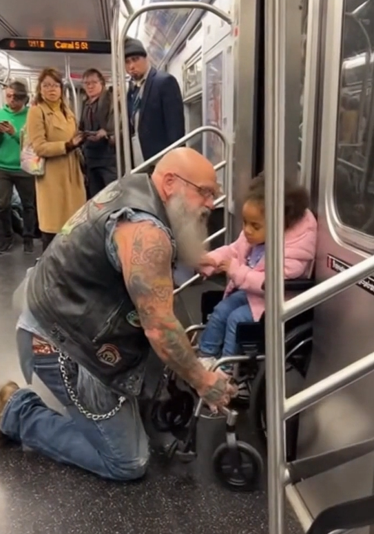 Most subway riders instinctively moved out of his way. But the biker wasn’t focused on them—his eyes locked on the frightened girl in the wheelchair.