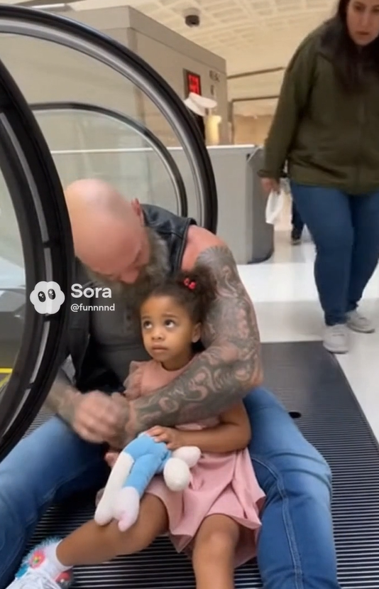 Security cameras caught everything. Within hours, the footage hit the internet — a six-second clip of a tattooed biker diving across an escalator to save a child from falling. By nightfall, millions had seen it.
