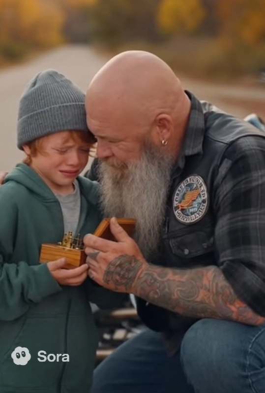 Bear carefully took the music box from the boy’s hands, his fingers gently brushing over the smooth wood. “I’ll keep this forever,” he said, his voice thick with emotion. “Thank you.”