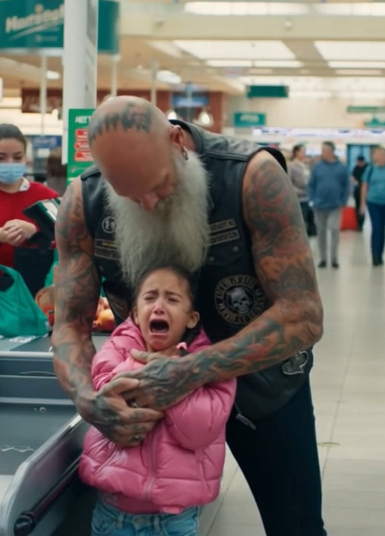 At the end of one checkout lane stood Jack — a broad-shouldered biker with a weathered face, a gray beard, and a leather vest that carried the marks of the road. His Harley waited outside, gleaming like a loyal friend in the heat. He wasn’t there for anything exciting — just a pack of batteries and a cold bottle of water.