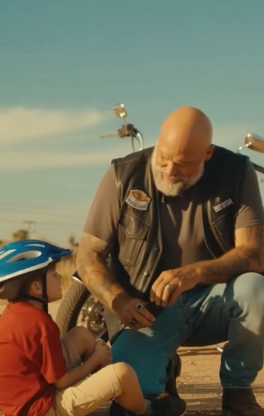 “Hey, kid, you alright?” the biker asked in a voice that was both rough and gentle, a mix of toughness and compassion.